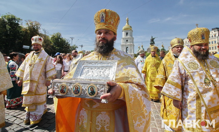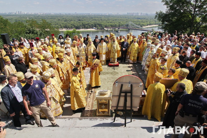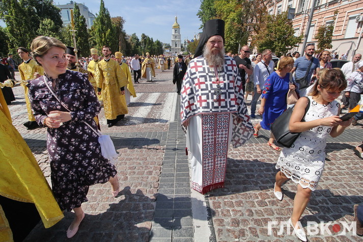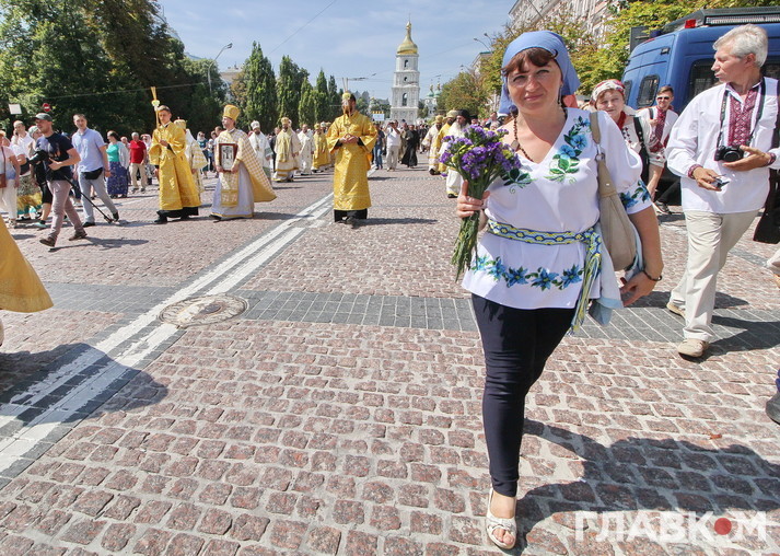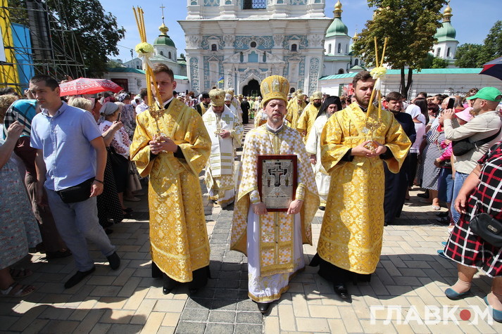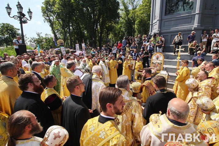 Після гучних промов паства рушила Хресним ходом до Володимирської гірки.