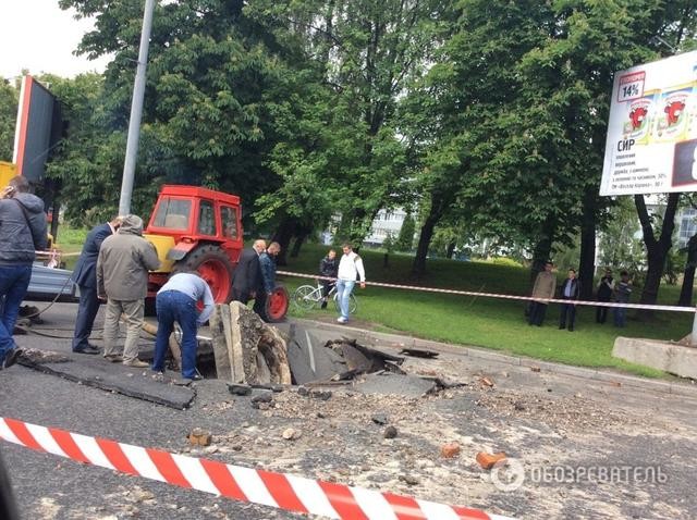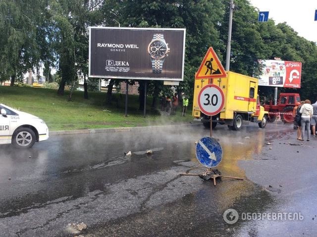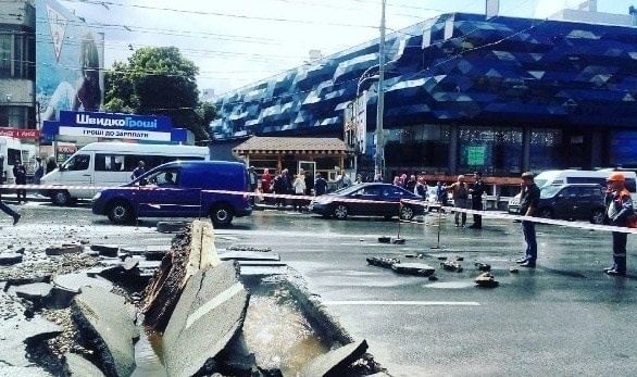 Щебінь, який вилетів із-під асфальту розбив скло декількох автомобілів, в тому числі маршруток, які були поблизу. З пошкодженої труби витікають потоки гарячої води, які розтікаються по довколишніх вулицях.