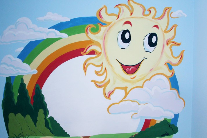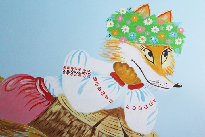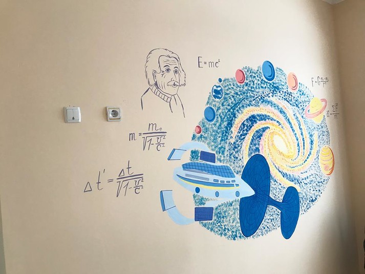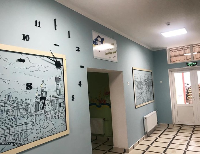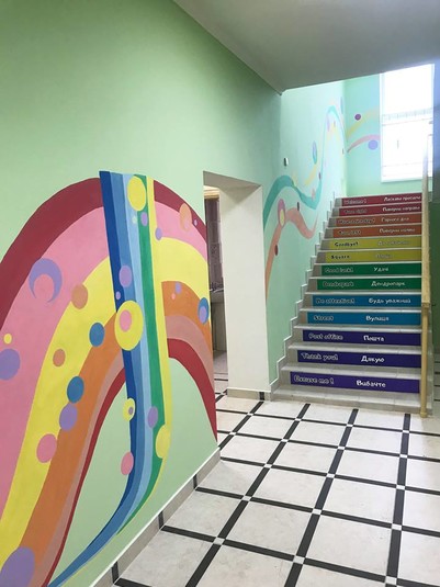 - яскравим дизайном - стіни розмальовували місцеві художники і вчителі малювання;