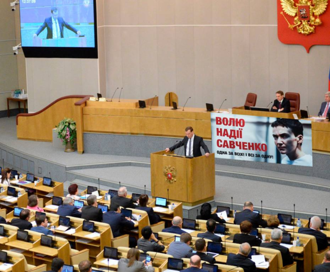 Автори деяких робіт висміюють ймовірну співпрацю Надії Савченко з російською владою