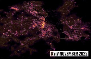 Так, у виданні показали, який вигляд з космосу мав вечірній Київ у січні 2022-го – до початку війни Київ сяяв з космосу, на 303-й день війни він темний….