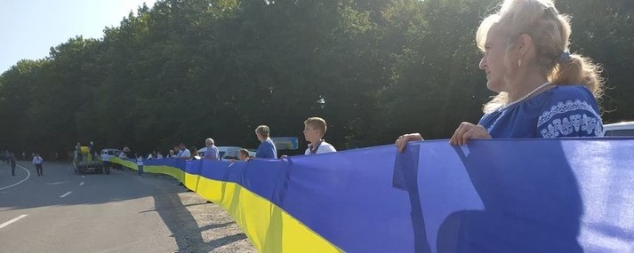 У неділю, 22 серпня, напередодні Дня Державного Прапора України між Тернопільською і Хмельницькою областями розгорнули державний прапор завдовжки в три кілометри. Про це пише Укрінформ.