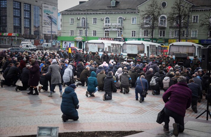 Присутні на колінах вшанували пам'ять жертв окупантів. Серед них ніхто не був військовим...