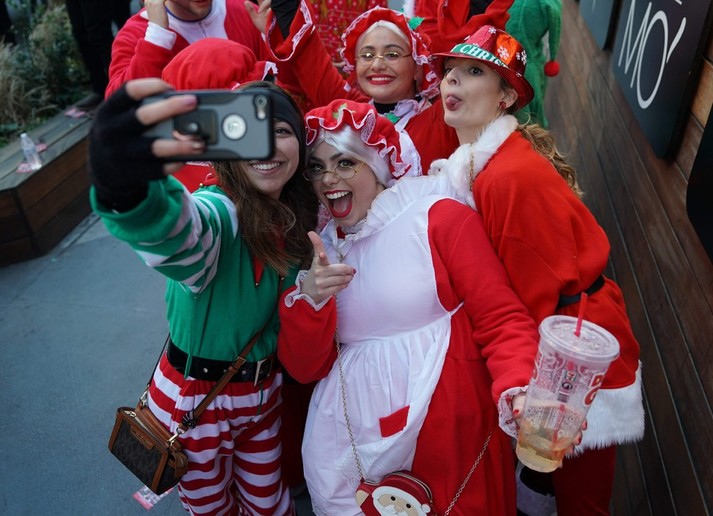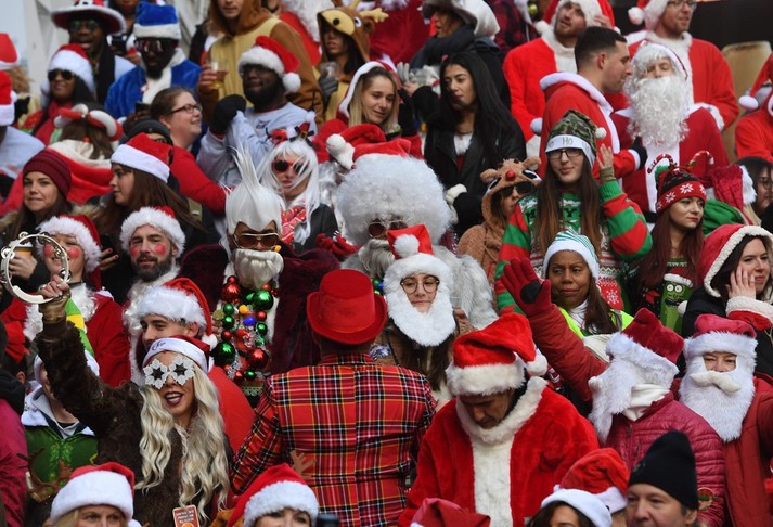 З наближенням Різдва і Нового року в різних містах світу проходять святкові заходи, такі як SantaCon 2018. Люди в костюмах Санта-Клауса та інших різдвяних персонажів виходять на вулиці для участі в розважальних заходах.