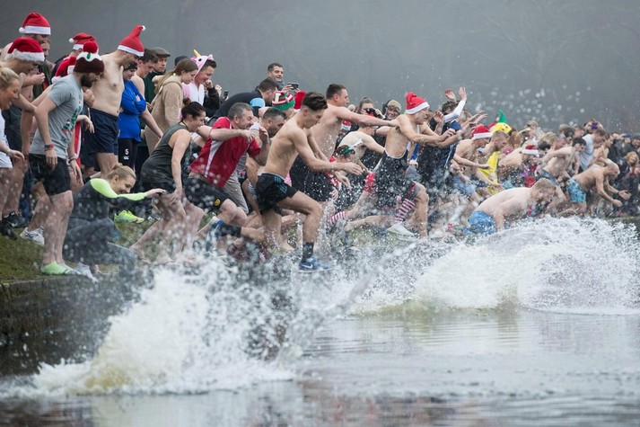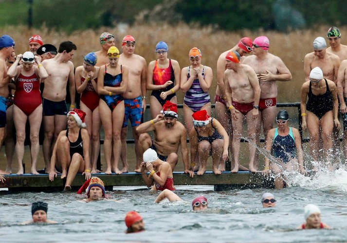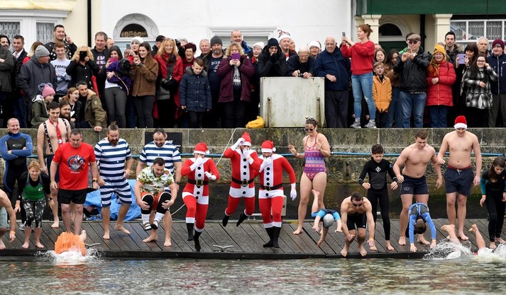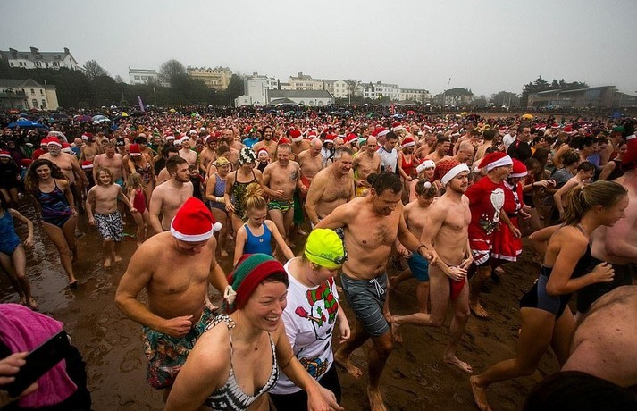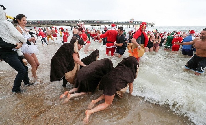 Більшість людей відзначають Різдво за столом біля ошатної ялинки. А дехто, незважаючи на холодну погоду, бере участь в щорічних Різдвяних купаннях. Тисячі людей по всій Великобританії пірнули в крижану воду, щоб взяти участь в традиційних запливах.