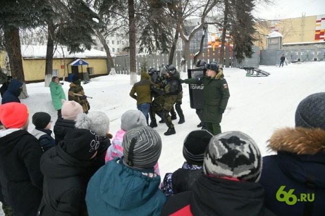 Російські ЗМІ повідомляють, що у військовій комендатурі Єкатеринбурзького гарнізону пройшов показовий захід для дітей. Військові двічі показали школярам, як відбувається розгін мітингу.