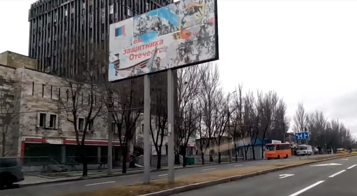На об'їзній дорозі, що практично не використовується мирними жителями, все та ж розруха, при цьому «влада ДНР» витратила кошти на повне оновлення стели «Донецьк» - написавши найменування російською мовою та позначивши «республіканський» статус «міста-героя».