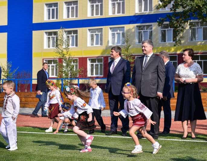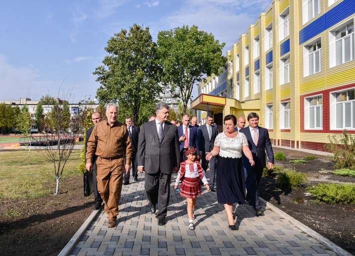 Президент Петро Порошенко під час робочої поїздки до Донецької області взяв участь у відкритті трьох реконструйованих шкіл – Покровської загальноосвітньої школи І-ІІІ ступенів № 9, Дружківської загальноосвітньої школи І-ІІІ ступенів № 17 та Часівоярської загальноосвітньої школи І-ІІІ ступенів № 17.