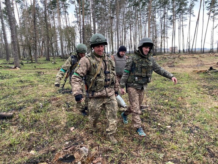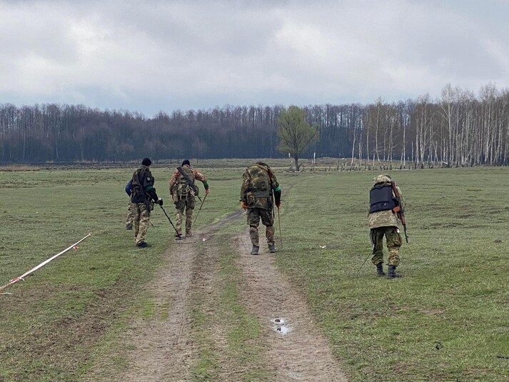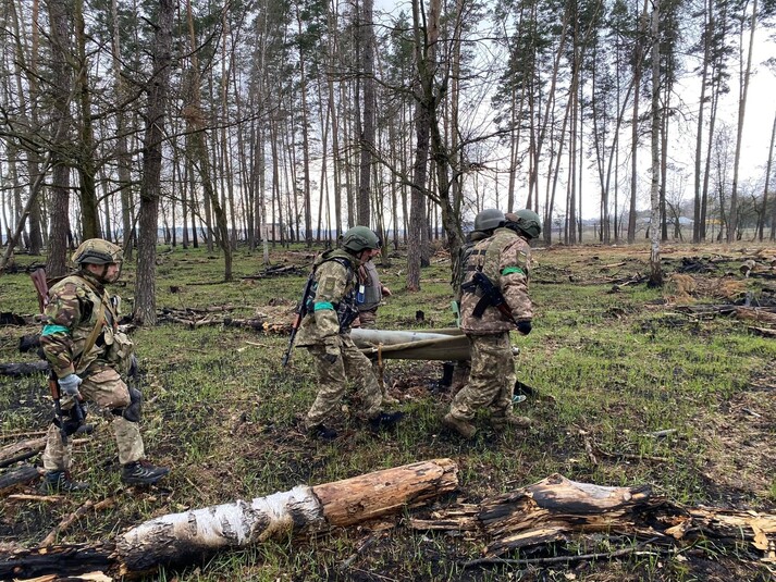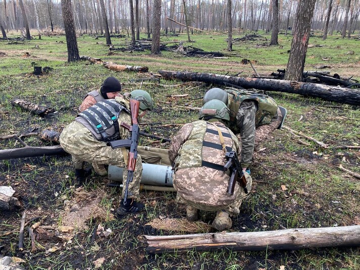 Інженерна рота 112 бригади ТрО ЗСУ зачищає ліс на Київщині, де стояла реактивна артилерія 37-ї окремої гвардійської мотострілецької бригади армії окупантів.