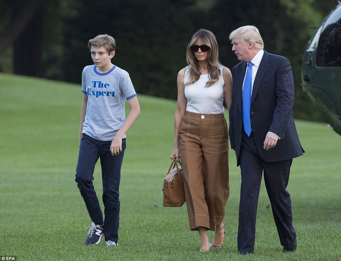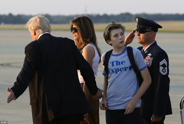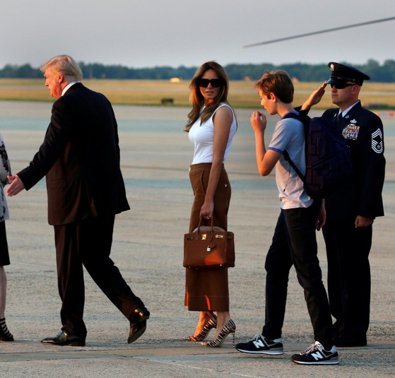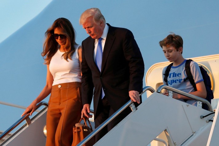 На кадрах відображено, як Дональд особисто приїхав, щоб зустріти дружину і сина. Вони прилетіли з Нью-Йорка. Там Беррон навчався в одній з найпрестижніших шкіл. Як тільки почалися канікули, мама з сином упакували валізи.