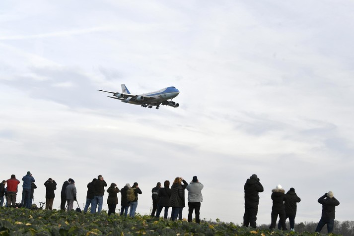 В районі аеропорту також зібралися тисячі глядачів з метою простежити приземлення літака американського президента.