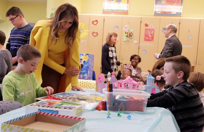 Зокрема, Меланія взяла на руки маленьку дівчинку і познайомилася з нею, а потім з цікавістю спостерігала за грою старших дітей і попросила їх навчити її грати.