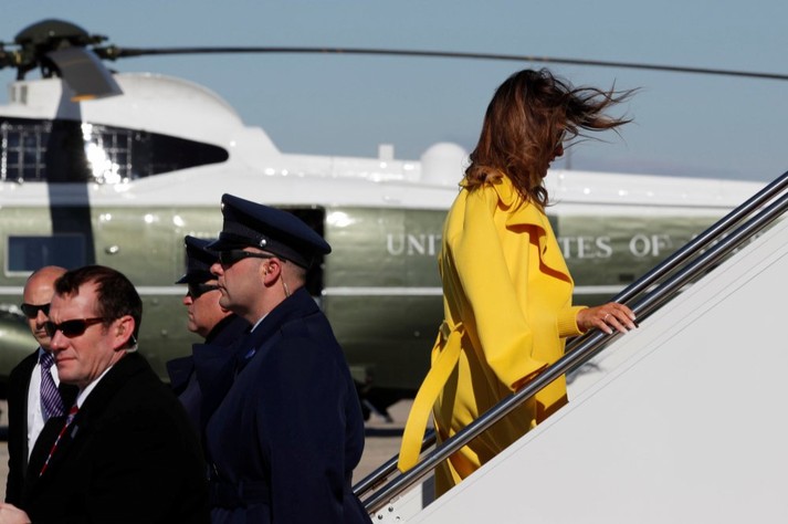 Меланія Трамп вибрала для офіційного візиту в Цинциннаті тепле поєднання двох кольорів: жовтого та коричневого