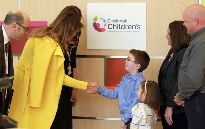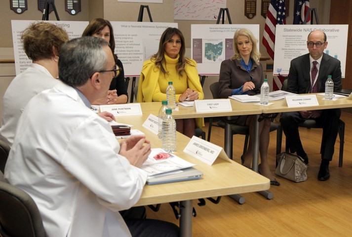 Дональд і Меланія Трамп полетіли в місто Цинциннаті на кордоні штатів Огайо і Кентуккі. Після прибуття в аеропорт подружжя розділилося: президент обговорив з чиновниками економічні питання, а перша леді поїхала в дитячу лікарню, де піклуються про дітей, чиї батьки були наркоманами.