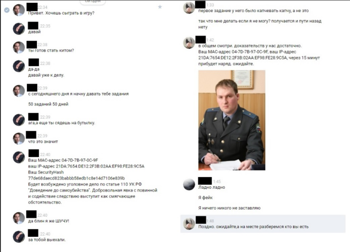 Столичні поліцейські запобігли самогубству двох підлітків, які грали у соцмережі в «гру» «Синій кит» – виконували завдання, які їм давали куратори у так званих групах смерті.