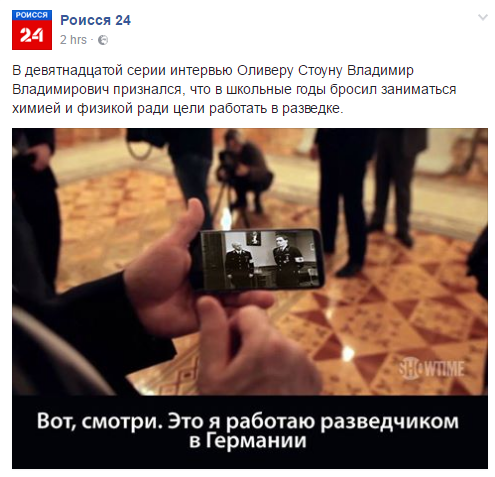 Нагадаємо, американські ЗМІ відреагували на фільм Олівера Стоуна «Інтерв'ю з Путіним». Зокрема, видання Daily Beast назвало фільм «дико безвідповідальним любовним листом Олівера Стоуна Володимиру Путіну».