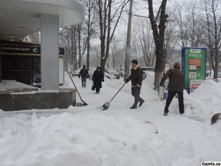 У місті працює снігоприбиральна техніка. Також самі черкащани вийшли з лопатами на вулиці.