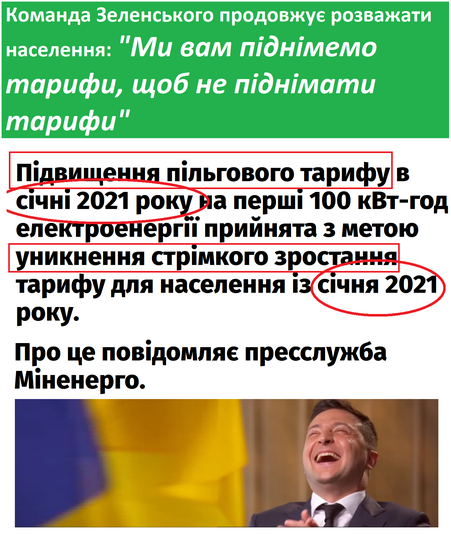 Кабінет міністрів скасував з 1 січня 2021 року пільговий тариф 90 коп./кВт год на перші 100 кВт для побутових споживачів. Відтепер весь обсяг спожитої електроенергії побутові споживачі оплачуватимуть за єдиним тарифом ─ 1,68 грн / кВт.год, тариф діятиме до 31 березня.