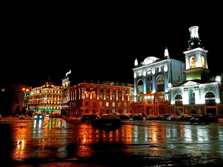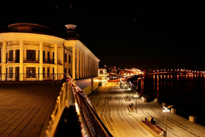 Вечірня набережна, підсвічені вогнями мости, яскраві паркові пейзажі.