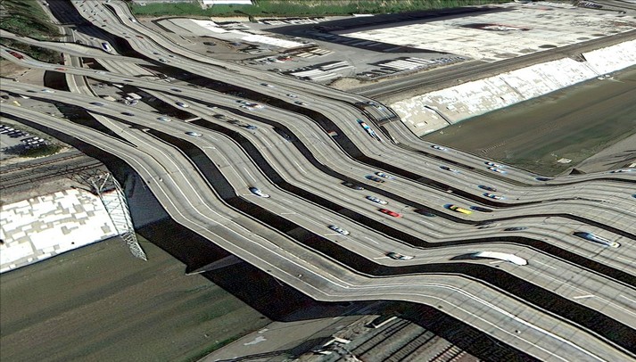 Для свого проекту «Листівки з Google Earth» художник Клемент Валла (Clement Valla) вже 8 років збирає зображення мостів, шосе, міст і гірських хребтів, спотворених картографічним сервісом.