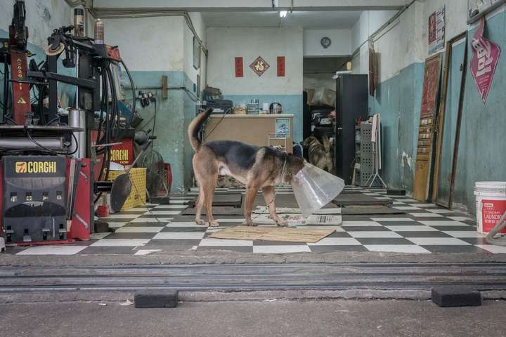 Справжні друзі людини. Зворушливі фотографії собак в гаражах Гонконгу