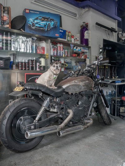 Цей фотопроект дає можливість заглянути в суворий чоловічий світ автозапчастин, мастила і любові до чотириногих друзів.