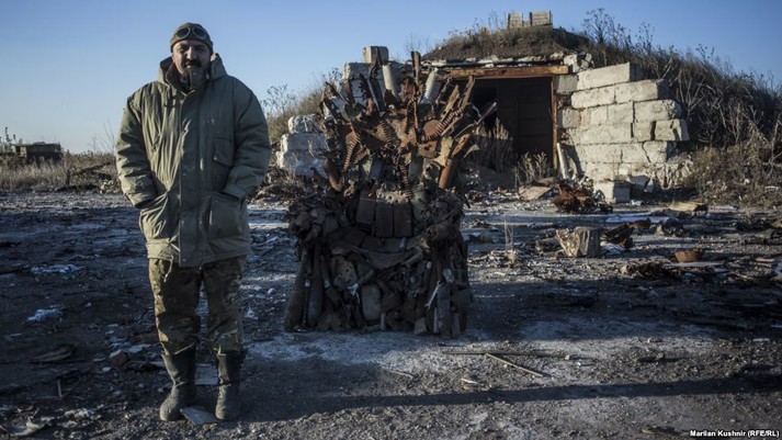 А метал той незвичайний: кулі, міни, осколки і гільзи – все прилетіло із окупованої території. На краю лінії оборони, за кілька сотень метрів від бойовиків, стоїть зімітований «трон» із відомого серіалу «Гра престолів».