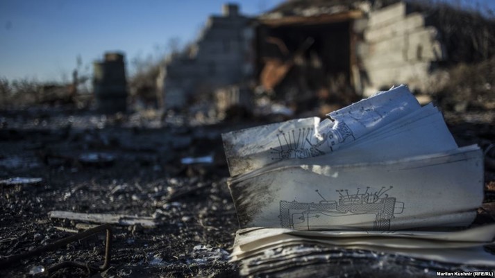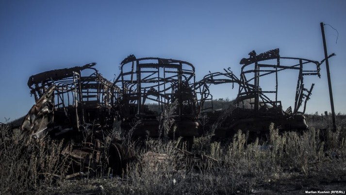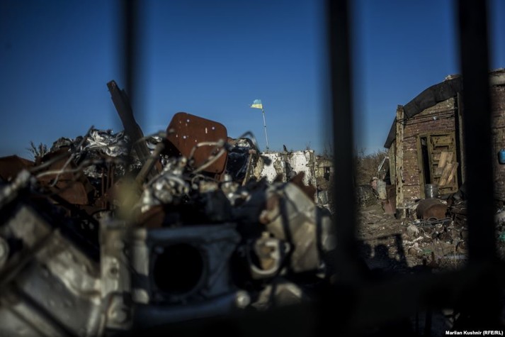 Неподалік від Донецького аеропорту на вщент розбитій території стоїть крісло. І не просте, а металічне.
