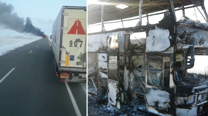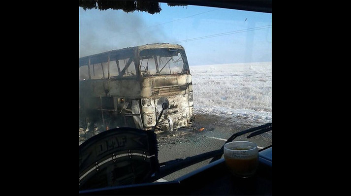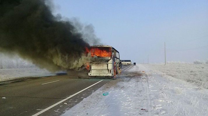 В результаті загоряння автобуса на трасі в Актюбінської області Казахстану загинули 52 людини, вижили лише п'ятеро, про це повідомили в комітеті з надзвичайних ситуацій МВС республіки. Всього в автобусі знаходилися 55 пасажирів і два водії. Пожежа сталася в Іргізському районі області на трасі «Самара - Шимкент» біля села Калибай.