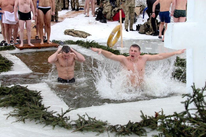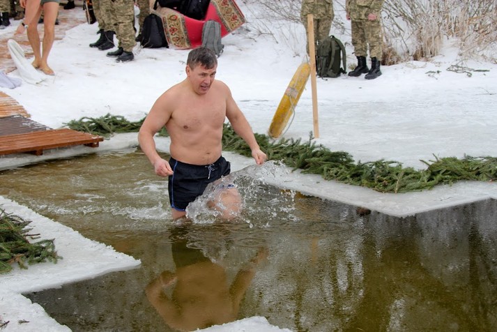 Суворе Водохреще: Гелетей з підлеглими пірнув в ополонку