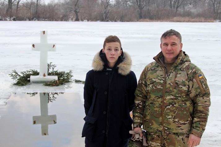 Сьогодні в передмісті Києва, на берегах Дніпра, військовослужбовці Управління державної охорони України відсвяткували Водохреще традиційним пірнанням у купель