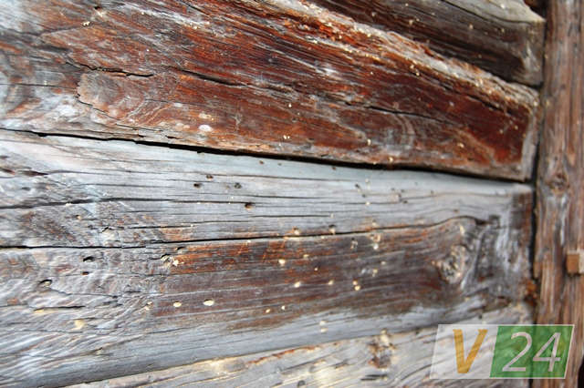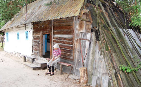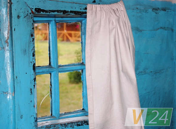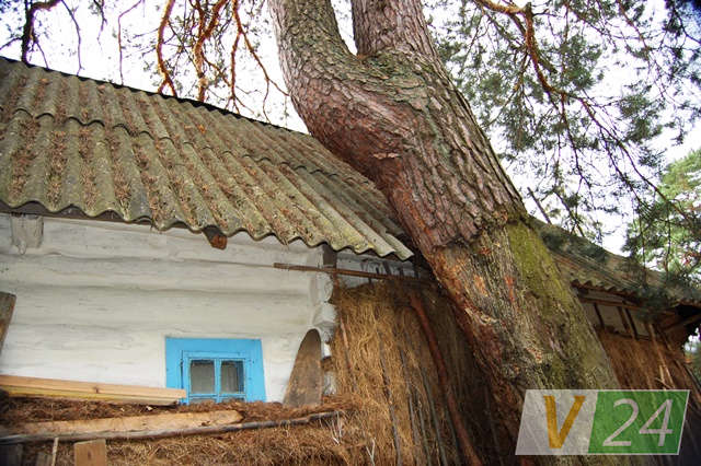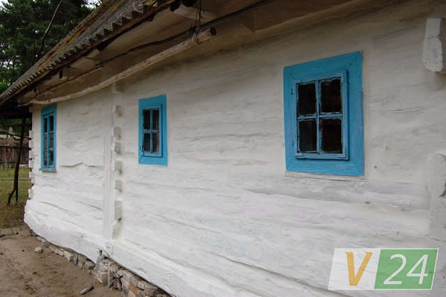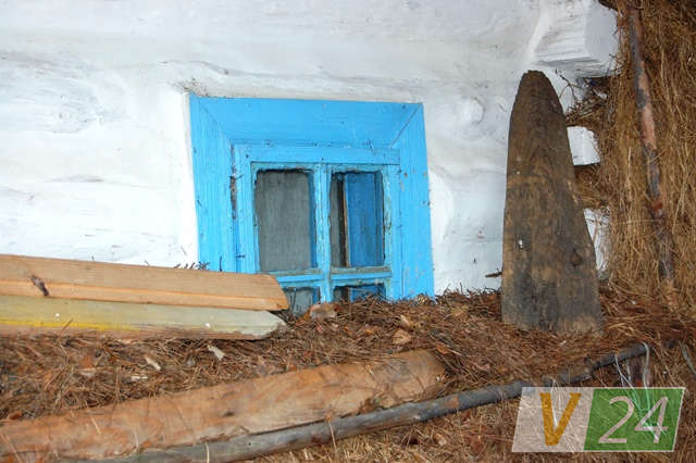 Подекуди з-під покрівлі ще виглядає солома. Вікна навіть літом утеплені хвоєю. Причілки підперті жердами…