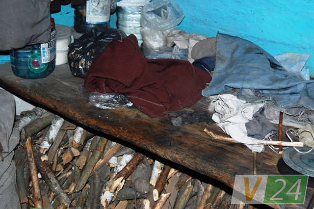 Дрова під грубою. Підлоги ніколи й не було – глиняна долівка.