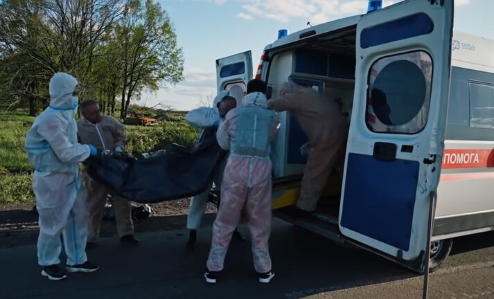 Антон Іванніков – капітан Збройних сил України – на повністю простріляній осколками машині їздить звільненими селами й забирає ці тіла. Декотрі лежать уже тижнями, декого поховали самі росіяни в нашвидкуруч зроблених могилах.