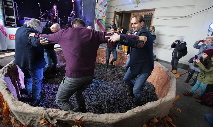 Традиційно Свято розпочалося із відкриття Великої давильні винограду. Організатори заходу запросили відомих львів’ян почавити тонну винограду ногами, щоб наступного року виготовити з нього фестивальне вино.