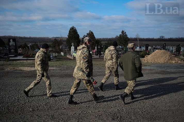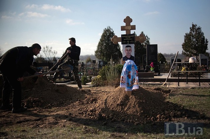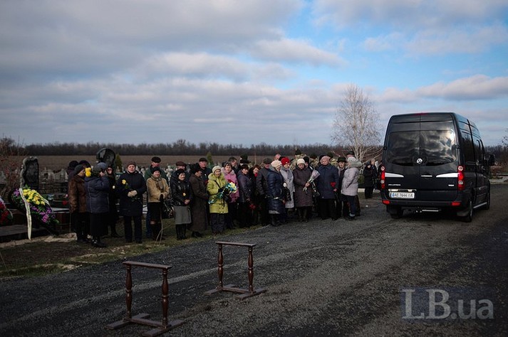 Цвинтар на околиці селища Широка Дача (Інгулець), поблизу Кривого Рогу. Два ікаруси з родичами і знайомими і з десяток легкових авто. 24 листопада тут провели перезахоронення Сергія Конопацького, який зник без вісті під час виходу з Іловайського котла 29 серпня 2014 роки. 3 роки його мати, Любов Іванівна, не вірила в загибель сина.