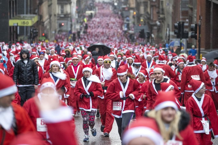 Тисячі бігунів вийшли на вулиці Глазго і Лондона, щоб взяти участь в щорічному Різдвяному пробігу «Santa Run 2019». У Глазго подібні забіги проходять з 2006 року, збираючи тисячі фунтів стерлінгів.