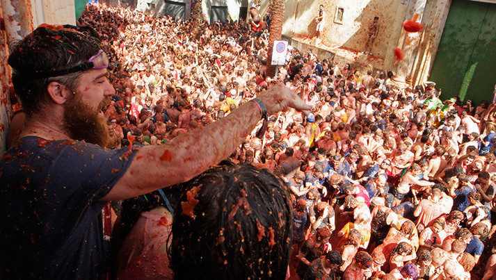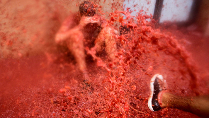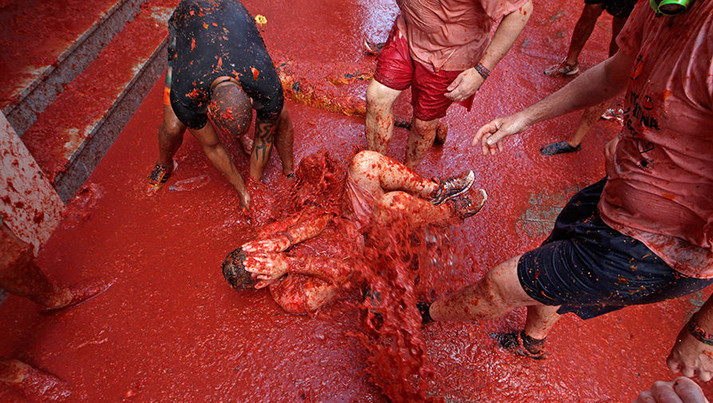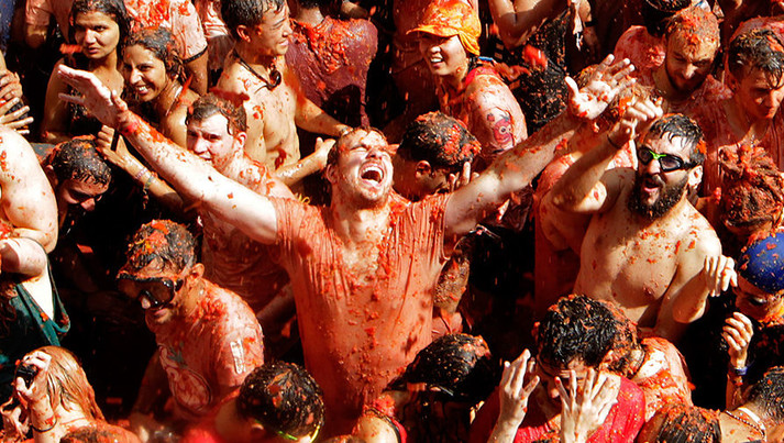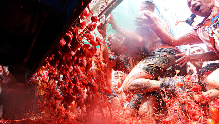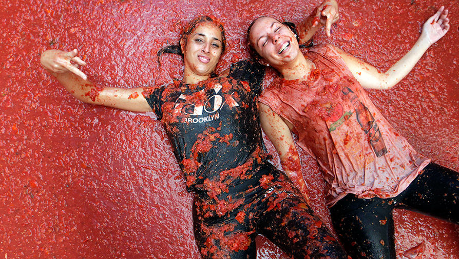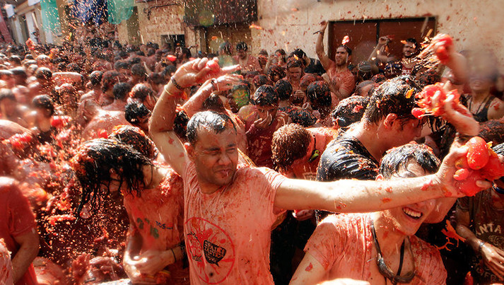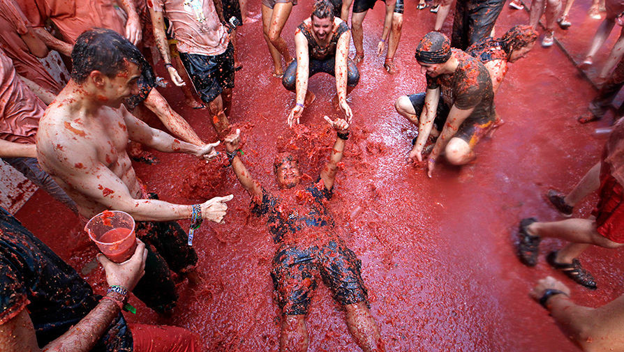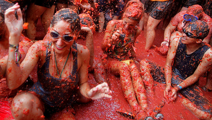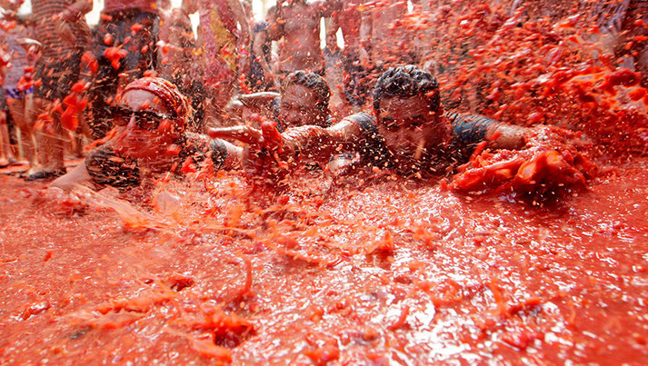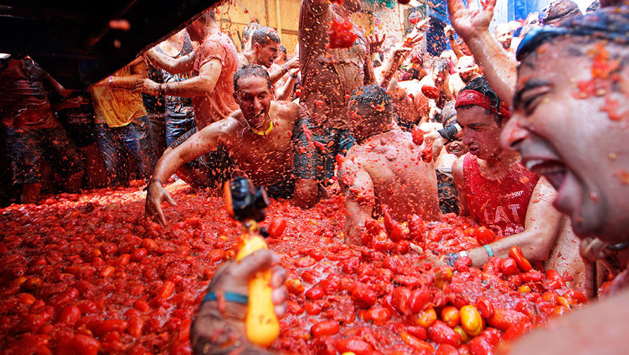 Фестиваль La Tomatina ось уже 71 рік проходить в іспанському місті Буньоль, в провінції Валенсія: в останню середу серпня місцеві жителі і туристи закидають томатами всіх підряд