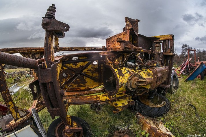 «Помічені з дороги яскраві плями в зелених заростях (незвично зелені, як для осені) змусили мене мало не закричати від радості і попросити водія зупинитися, розвернутися і виїхати на грунтовку. Це ж звалище техніки!», - коментує наведені вище світлини блогер.