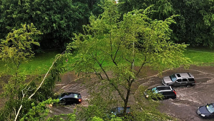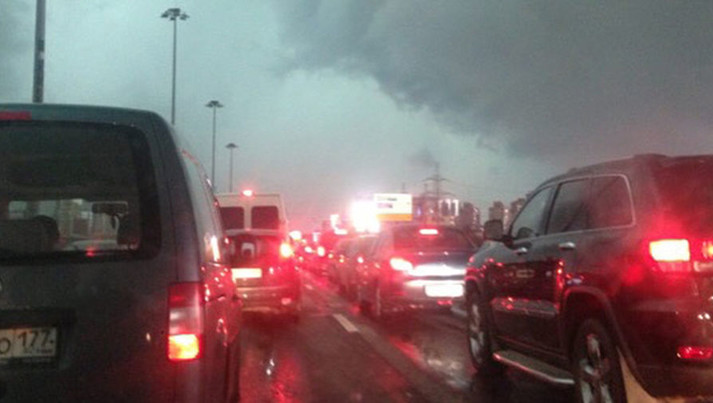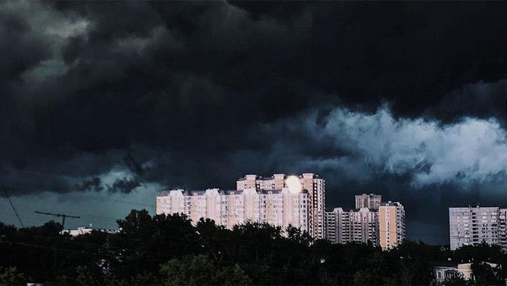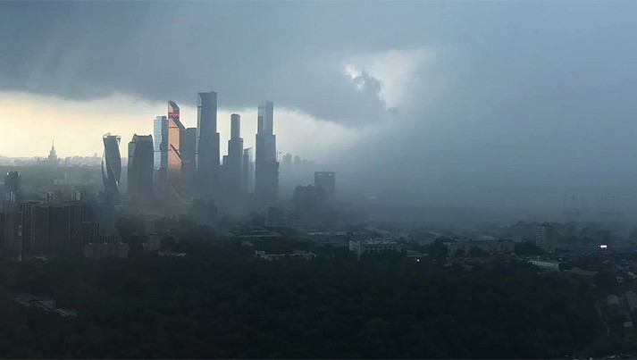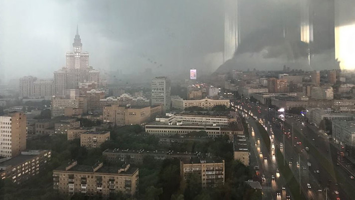 Столиця Росії потерпає від сильної зливи. Крім половини місячної норми опадів, у Москві гроза, град і шквалистий вітер
