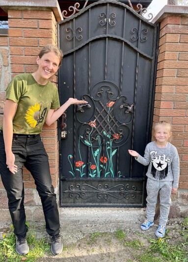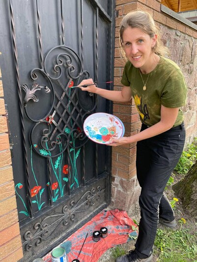 У Бучі художниця розмальовує отвори від куль на парканах (фото)