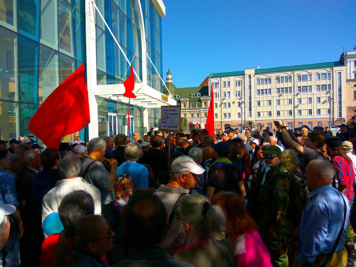 У Харкові пенсіонери з червоними прапорами вимагають зупинити «криваву АТО»