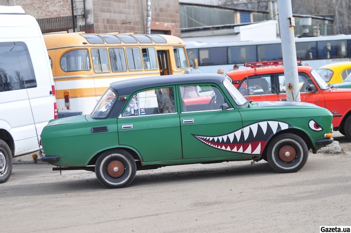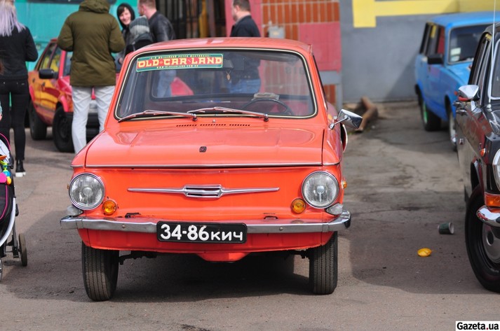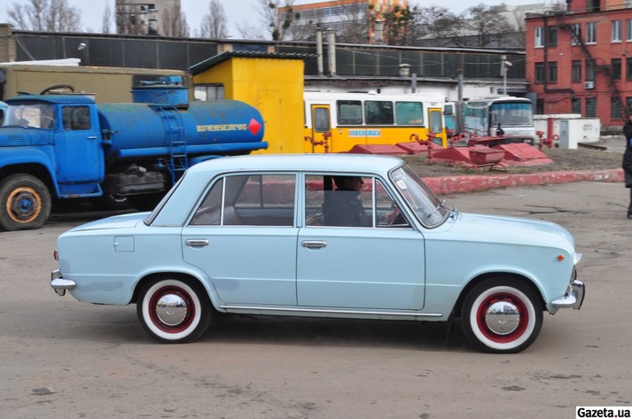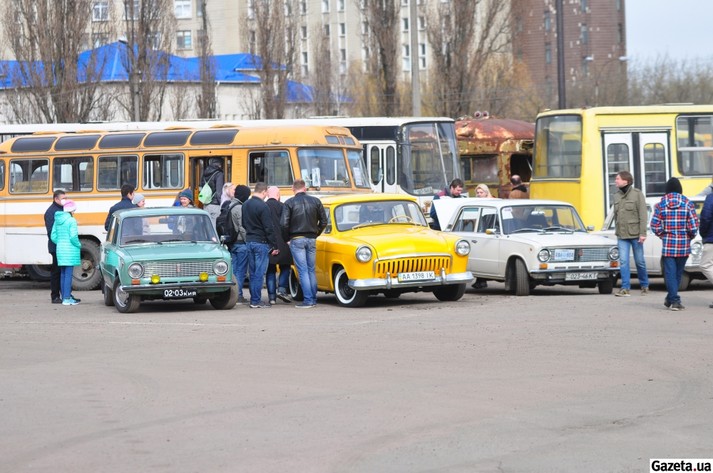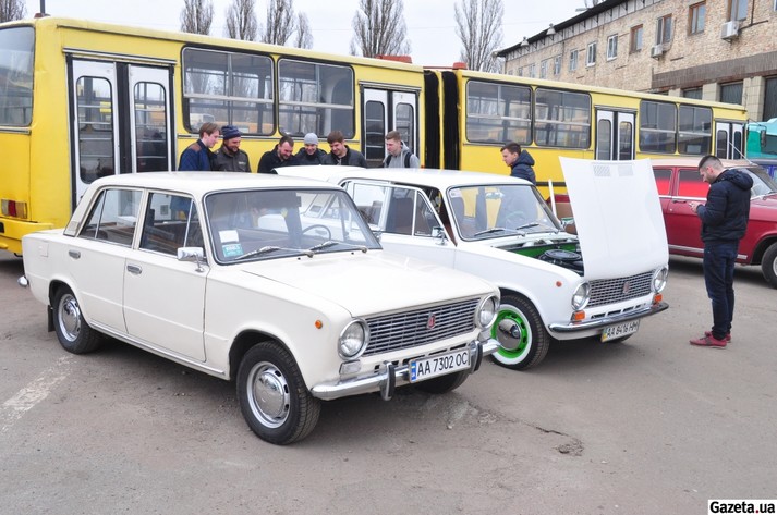У дворі реставраційного центру зібралися любителі ВАЗівської класики – клуб Retro Cars Kyiv. Серед їхніх машин найбільше ВАЗ-2101 та ВАЗ-21011. Деякі екземпляри мають кругле бічне люстерко – свідчення того, що машина із перших партій «Жигулів».