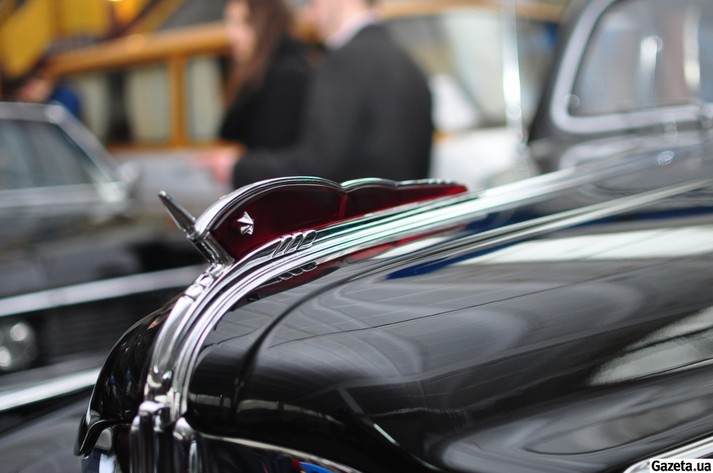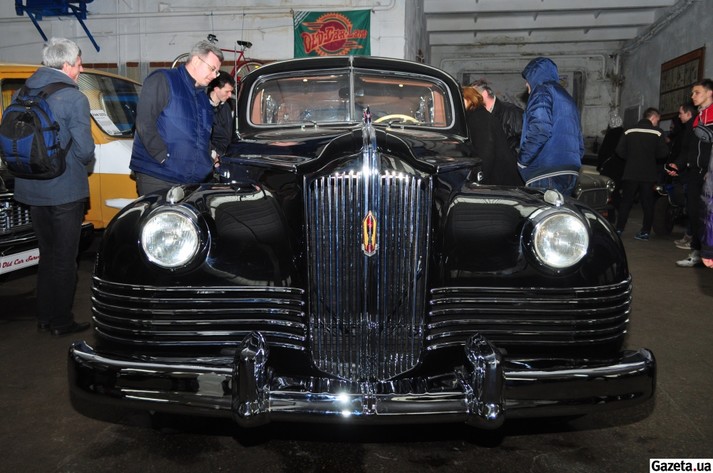 Чорний лімузин ЗІС стоїть у центрі виставкового залу. Автомобіль відреставровано із точністю до оригіналу.