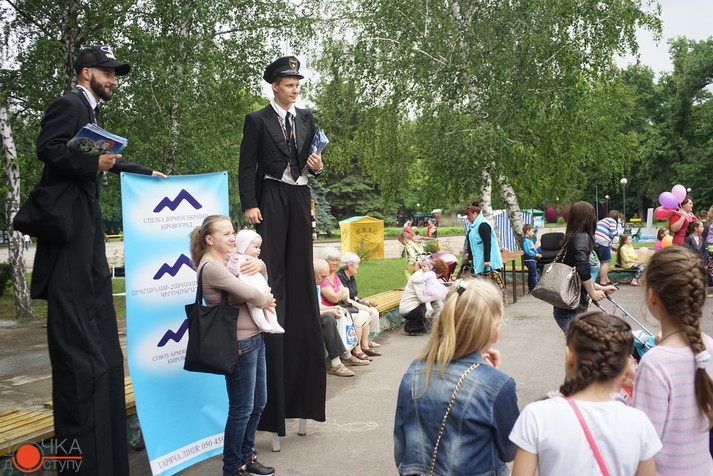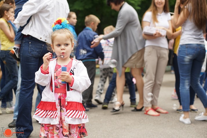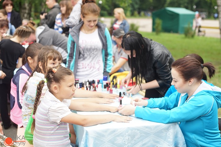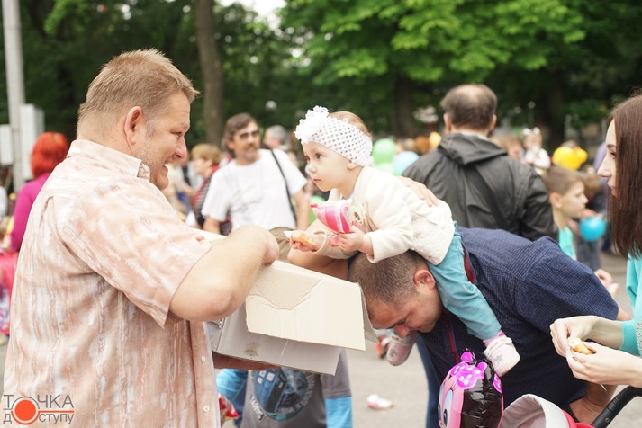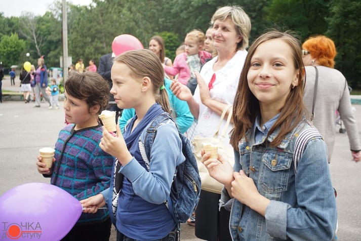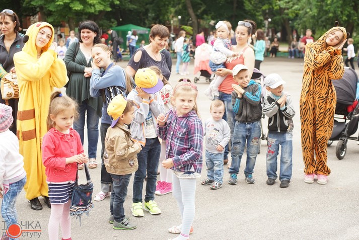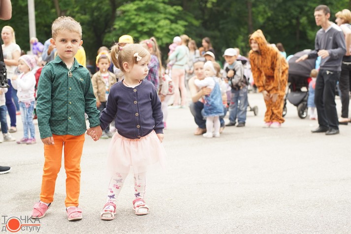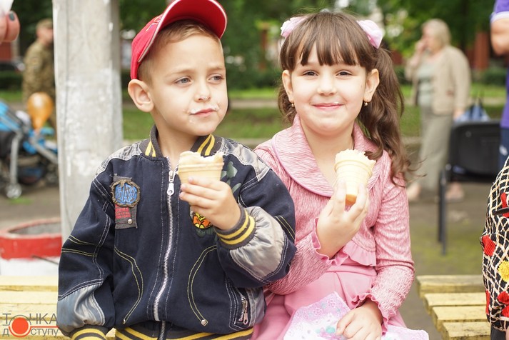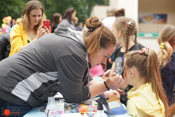 Під час свята для дітей влаштували цікаву розважальну програму з танцями та іграми, а також годували ласощами. Не зважаючи на похмуру погоду, з облич дітлахів не сходили усмішки, вони із задоволенням малювали та розважались.