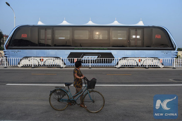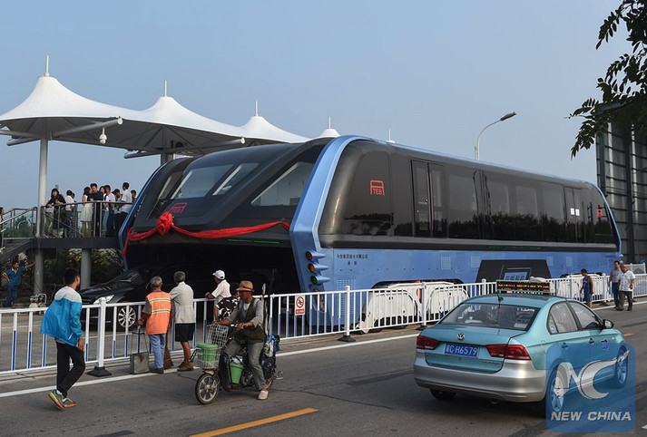 За повідомленнями китайського інформаційного порталу Xinhua, Transit Elevated Bus (TEB) - вже не просто реальна технологічна концепція. Справжній автобус із завищеним дном вже зробив свій перший рейс в місті Циньхуандао.