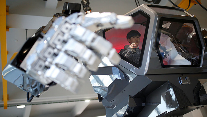 У південнокорейському місті Кунпхо представили прототип чотириметрового робота Method-2, який повторює дії оператора, який сидить у кабіні