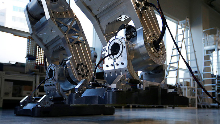 Небойовий робот, який поки що не може обходитися без зовнішнього джерела живлення, але вже майже сам рухає 130-кілограмовими руками, – у фоторепортажі.