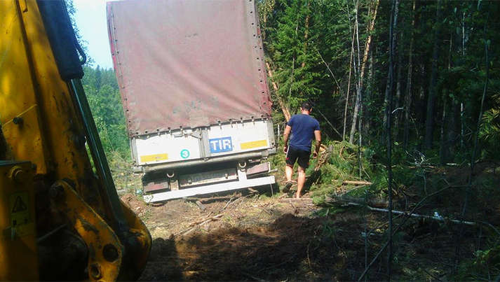 Як пошкоджену фуру витягали з лісу - у фоторепортажі: