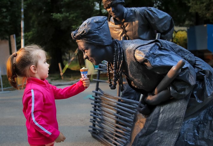 Міжнародний фестиваль живих статуй пройшов в Бухаресті (Румунія). Артисти в костюмах різних персонажів завмирали в статичних позах.